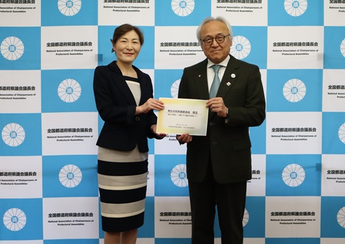 1月19日(月)、東京・都道府県会館において、「男女共同参画委員会」による提言の手交式が開催され、安居男女共同参画委員長(石川県議会議長)が藏内会長に提言を手交しました。